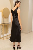 Длинная женственная сорочка Mia-Amore на широких бретелях, без подреза под грудью. Изделие выполнено из однотонного смесового шелка. Вышивное широкое кружево, дополненное черными кристаллами Swarovski, украшает вырез изделия. Декор - атласный бантик с подвеской, расположенный по центру выреза сорочки. С одной стороны расположен пикантный разрез для свободы движения.