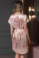 Туника средней длины Mia-Amore выполнена из смесового принтованного шёлка. По центру V-образной горловины декоративная застёжка на три пуговицы. В боковых швах туники карманы, на талии съёмный пояс.