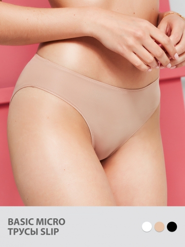 Гладкие трусы «слипы» из эластичной микрофибры со средней линией талии и узкой боковиной. Превосходно облегают и комфортно ощущаются на теле. Практически полностью закрывают ягодицы. Ластовица выполнена из мягкого хлопка.