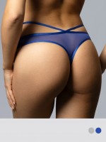 Трусы - стринги из гипюра и эластичной сетки со средней линией талии. С акцентной лентой в тон по краям. Соблазнительно подчеркивают бедра, практически полностью открывают ягодицы. Превосходно сочетаются с тонкой и облегающей одеждой. Ластовица из мягкого хлопка обеспечивает дополнительный комфорт.