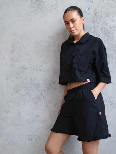 Женские домашние шорты свободного силуэта из легкого хлопкового фактурного батиста "Мушка". Прямой крой, высокая посадка и нежные рюши придают образу невероятную нежность и чувственность. Шорты прекрасно сочетаются с бесшовными топами, майками и футболками MY. Состав: 100 % хлопок Обмеры изделия: Ширина изделия на уровне талии (?): S — 63-64 см, M — 65-66 см, L — 67-68 см Ширина брючины на уровне низа (?): S — 35 см, M — 36 см, L — 37 см Длина изделия по боковому шву: S — 36 см, M — 37 см, L — 38 см Длина изделия по внутреннему шву: S — 13,5-14 см, M — 14-14,5 см, L — 14,5-15 см Ширина изделия на уровне бедер (?): S — 70-72 см, М — 74-76 см, L — 78-79 см Сделано в России.