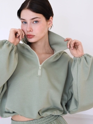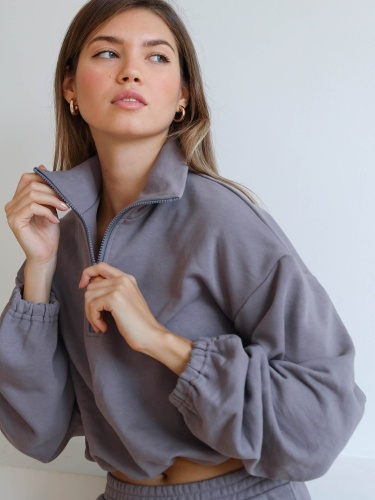 Женская укроченная толстовка на кулиске с высоким воротом на молнии выполнена из премиального футера. Объемный крой и спущенное плечо идеально для повседневного комфортного образа. Толстовка прекрасно сочетается с брюками и бесшовными леггинсами MY. Состав: 80% хлопок, 20% полиэстер Обмеры изделия: Длина изделия по спинке: S/M - 75-77 см, L/XL - 75-77 см Длина изделия по переду: S/M - 69-71 см, L/XL - 69-71 см Ширина изделия под проймой (?): S/M - 62-63 см, L/XL - 66-67 см Ширина изделия по низу (?): S/M - 53-55 см, L/XL - 55-57 см Ширина манжеты: S/M - 16-17 см, L/XL - 16-17 см Ширина горловины: S/M - 17 см, L/XL - 18 см Длина плеча: S/M - 28 см, L/XL - 29 см Длина рукава: S/M - 46-48 см, L/XL - 46-48 см Сделано в России.
