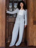 Женские домашние брюки широкого прямого силуэта. Свободный крой и мягкий, уютный, с небольшим ворсом трикотаж обеспечивают невероятный комфорт.Пояс на резинке, дублирован шнурком. Удобные внутренние боковые карманы.Всё вышеперечисленное располагает к расслабленному времяпровождению в кресле с книжкой или чашечкой капучино. Отличное дополнение в качестве верха -- блуза M-102.Состав: 95% хлопок; 5% спандекс