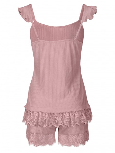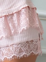 Игривый домашний комплект: шортики и маечка на тонких лямках с крылышками. Сшиты из превосходной вискозной ткани «в рубчик» пепельно-розового цвета. Обилие кружева и оборок сделает Вас похожей на сказочную принцессу. Прелестный образ можно дополнить халатиком К-4.