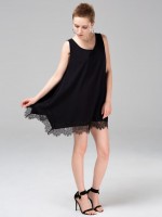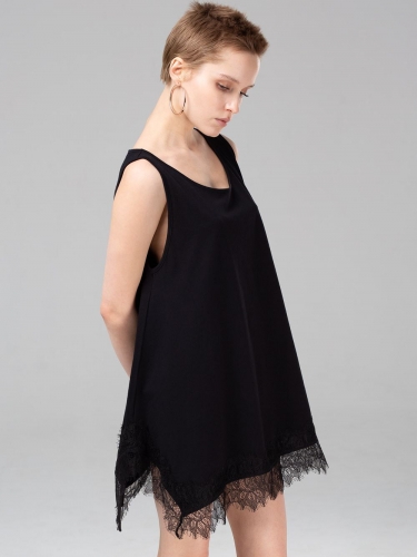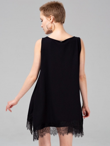 Женская блуза-туника без рукавов, летящего А- образного силуэта.Выполнена из хлопкового трикотажного полотна, снизу оторочена ажурным кружевом. Идеальный предмет Вашего базового гардероба! Носим с узкими брючками, лосинами, с обувью на каблуке и без, с украшениями и без них.Бонус: можно съесть лишнюю порцию десерта, эта замечательная маечка скроет Ваше преступление! Сзади на вороте милое сердечко «OPIUM love».