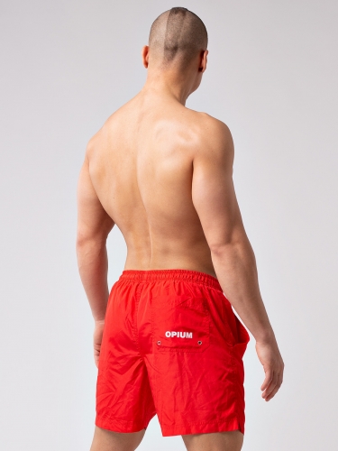 Мужские пляжные шорты из быстросохнущей ткани. Яркий красный цвет уместен и на отдыхе, и в спортзале. Шорты на резинке, дублированной контрастным белым шнуром с металлическими брендированными эглетами. Удобные боковые карманы и накладной карман сзади с белым логотипом Opium. Модель имеет дополнительную сетчатую вставку анатомической формы для Вашего удобства и выигрышной посадки. В этих великолепных шортах любой мужчина будет чувствовать себя комфортно и уверенно, независимо от того, где бы ни н