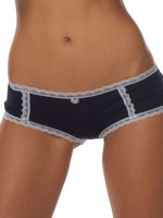 Нарядные шортики с заниженной линией талии из мягкой микрофибры, черные с белой кружевной тесьмой и белые с черной тесьмой, украшены очаровательным «серебряным» сердечком с надписью OPIUM LOVE.