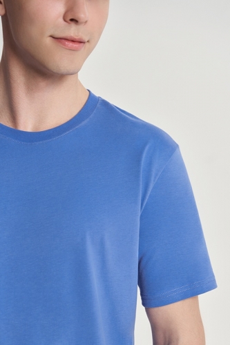 Футболка прямого силуэта. Укрепление бейкой плечевых швов и горловины спинки. Горловина из рибаны, по переду горловины отстрочка.