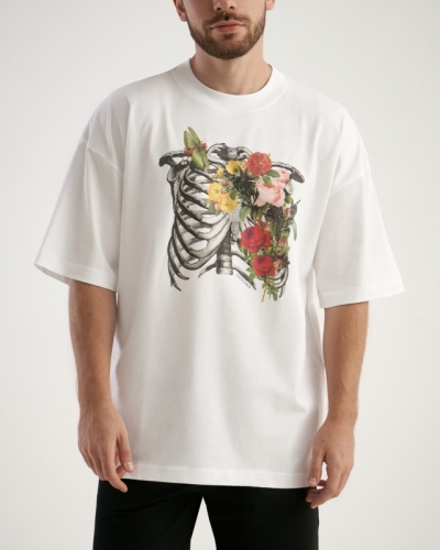 Футболка свободного силуэта. Спущенное плечо. Горловина из двух деталей, из рибаны.