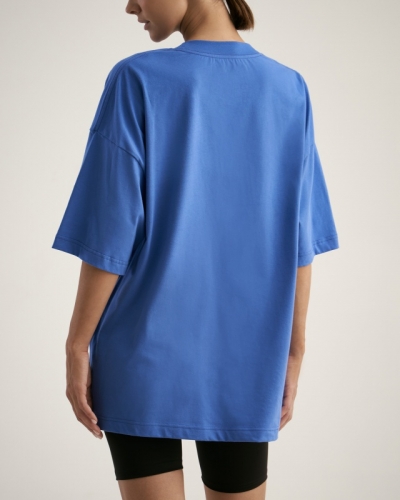 Футболка свободного силуэта. Спущенное плечо. Горловина из двух деталей, из рибаны.