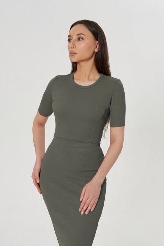Укороченная футболка CROP. Отстроченные рельефные швы по полочке и спинке. Втачной рукав с открытым нижним срезом.