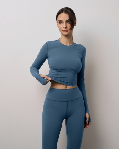 Рашгард спортивный с руковами -реглан удлиненными и фиксированными на большом пальце.На поолоче и спинке рельефные швы переходяшие на рукова.Полочка отрезная под грудью.