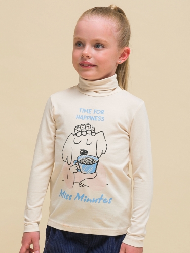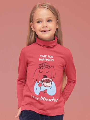 Водолазка детская для девочки. Джемпер актуального свободного силуэта подарит ребёнку комфорт и не будет стеснять его движений. Водолазка с длинным рукавом дополнена воротником-стойкой, который защищает шею от холода и ветра — нет необходимости дополнительно надевать шарф. За изделием легко ухаживать. В составе ткани пребладает высококачественный хлопок — лонгслив приятен на ощупь и безупречно пропускает воздух, позволяя коже ребёнка дышать. Эластан помогает изделию сохранить отличную форму в течение долгого времени. Водолазка с принтом по переду. Принт мягкий и прочный, без проблем переносит частые стирки. На принте изображена собачка в бигуди с чашкой кофе, надписи переводятся: «время для счастья», «пропустить минутку». Джемпер с воротником выполнен в двух трендовых цветах: красный и бежевый (кремовый оттенок). Водолазку легко комбинировать с различными брюками, джинсами, легинсами, юбками, сарафанами. Размерный ряд: 2 (92); 3 (98); 4 (104); 5 (110); 6 (116), 7 (122); 8 (128); 9 (134); 10 (140); 11 (146). Водолазка с горлом станет замечательным дополнением гардероба для маленьких девочек дошкольного и младшего школьного возраста, а также девочек-подростков. Его можно носить в детский сад, школу, на прогулки, отдых, а также дома. Водолазка подходит для круглогодичного применения: летом, осенью, зимой, весной и демисезон. Стильный и практичный подарок дочери, внучке или сестре на Новый год и любой другой праздник.