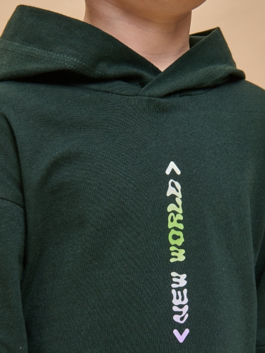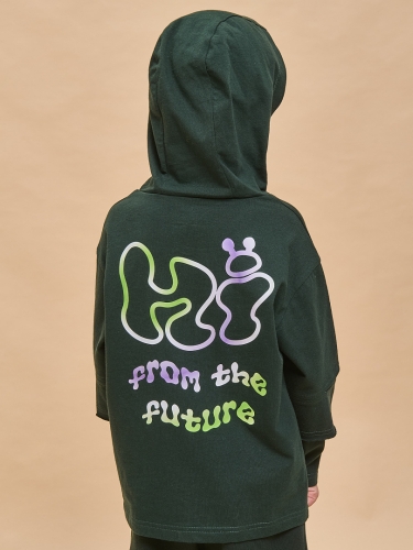 Маркированный товар Худи детское для мальчика. Джемпер актуального оверсайз-силуэта со спущенным плечом подарит ребёнку комфорт и не будет сковывать его движений. Худи с капюшоном с двумя швами — это обеспечивает анатомически правильную форму и комфортную посадку по голове. Модель с имитацией многослойности в стиле гранж, что актуально в этом сезоне. Рукава состоят из двух частей, которые наслаиваются друг на друга. На верхней части аккуратные декоративные разрезы. Изделие неприхотливо в уходе. Худи оверсайз с принтом выполнено из 100% высококачественного хлопка — джемпер мягкий, дыщащий и гипоаллергенный. Принт эластичный и прочный — отлично переносит частые стирки. Надпись переводится: «привет из будущего». Изделие выполнено в универсальной расцветке, его легко комбинировать с любыми брюками, джинсами. Отличное худи оверсайз для мальчиков дошкольного и младшего школьного возраста, а также подростков. Джемпер подходит для детского сада, прогулок, отдыха, дома. Худи с капюшоном для мальчика подходят для круглогодичной носки. Помните о правильном уходе за изделием: рекомендуется стирать при температуре не выше 30 °C, без предварительного замачивания, с изнанки. Это поможет сохранить качество и цвет худи на длительное время. Не забывайте о выборе правильного размера. Используйте таблицу размеров на фотографии, чтобы выбрать подходящий вариант для вашего мальчика. Обратите внимание, что цвет товара на экране вашего устройства может отличаться от реального.