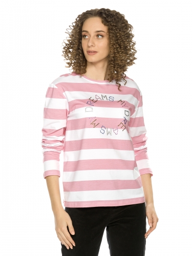 Джемпер женский. Прямой свободный лонгслив. Немного спущенная линия плеча. Расслабленный силуэт. Декор из разноцветных страз и серебристого металлика. Перевод Мои мечты .