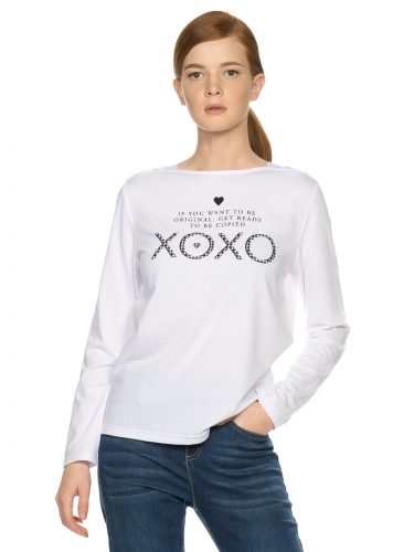 Джемпер женский из мягкого тонкого трикотажа прямого кроя с почти квадратной формой горловины за счет подкройных плечей. Втачной рукав. Стойкий эластичный glossy rubber принт. Перевод Если хочешь быть оригиналом будь готов к тому, что тебя захотят копировать.