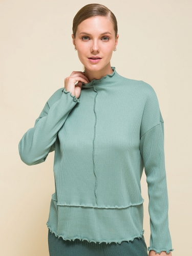 Женский джемпер из трендовой ткани в мелкий рубчик. Изделие свободного кроя со спущенным плечом подарит вам комфорт и свободу движения. Лонгслив из кашкорсе с высоким цельнокроеным воротником-стойкой обеспечивает дополнительную защиту шеи от холода и ветра в прохладную погоду. Декоративные швы и изящная обработка «салатный край» добавляют джемперу элегантности и женственности. Лонгслив однотонный, без принта. За ним легко ухаживать. В составе ткани преобладают качественный хлопок и мягкая вискоза — модель приятна на ощупь и отлично дышит. Эластан помогает сохранять прекрасную форму в течение длительного времени. Джемпер в рубчик представлен в двух трендовых цветах: зелёный и розовый. Размерный ряд: XS (42); S (44); M (46); L (48); XL (50). Джемперы такого фасона подходят как женщинам, так и девушкам, девочкам-подросткам. Такая кофта идеальна для работы, учёбы, отдыха, а также может выступить в роли домашней одежды. Женский джемпер с длинным рукавом можно носить осенью и весной (демисезон), зимой как средний слой одежды и в прохладную погоду летом. Он великолепно сочетается с различными брюками. Это замечательный подарок для мамы, сестры или подруги на Новый год или любой другой праздник. Состав: 50%хлопок 47%вискоза 3%эластан