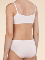 Комплект белья для девочки, топ и трусы. Укороченный топ и слипы средней посадки выполнены из ткани с высоким содержанием хлопка, что делает их мягкими, гипоаллергенными и дышащими. Эластан обеспечивает комплекту прекрасную форму на протяжении длительного времени. Топ мягкий, тонкие бретели не сползают, исключают трение и раздражение. По проймам, низу и верхнему краю спинки окантовка из пайпинга в тон изделия, благодаря чему они не растягиваются. Спереди по центру топа небольшая сборка для дополнительного объема. Бра украшено милым принтом в виде медвежонка, надпись переводится: «не теряй свою улыбку», принт устойчивый и не боится частых стирок. Кроп топ детский отлично подходит для носки под одеждой. Трусики для девочки также декорированы принтом в виде трёх милых медвежат. Принты эластичные и стойкие, легко переносят частые стирки. Хлопковые трусы подходят девочкам дошкольного возраста. Помните о правильном уходе за изделием: рекомендуется стирать при температуре не выше 30 °C, без предварительного замачивания, с изнанки. Это поможет сохранить качество и цвет белья на длительное время. Не забывайте о выборе правильного размера. Используйте таблицу размеров на фотографии, чтобы выбрать подходящий вариант для вашей девочки. Обратите внимание, что цвет товара на экране вашего устройства может отличаться от реального.