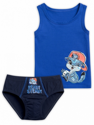 Комплект для мальчиков: майка и трусы. Майка свободного кроя, принт на передней части изделия. Трусы-слипы, декоративная отстрочка в области гульфика, принт с добавлением металлика.