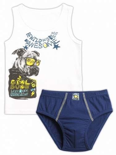 Комплект для мальчиков майка и трусы. Классическая майка на широких лямках. Трусы слипы. Декоративная отстрочка в области гульфика.