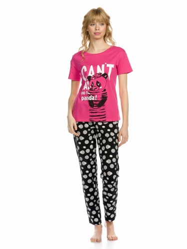 Описание: Комплект женский: футболка и брюки. Футболка прямого кроя среднего объема с втачным рукавом. Суперстойкий и эластичный принт. Перевод: "Не могу сказать нет панде". Брюки среднего объема на комфортной внутренней резинке.