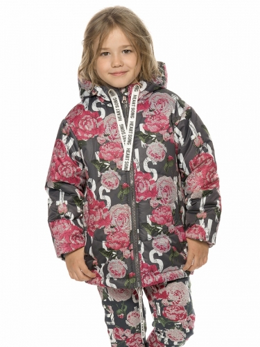 Маркированный товар! Осенняя удлиненная куртка для девочек , силуэт кокон, подчеркнутый отстрочкой на переде и спинке. Утеплитель синтепон 200гр/м2. Курточная ткань с двусторонним водоотталкивающим покрытием. Подклад из хлопкового трикотажа по стану и в капюшоне, из тонкого полиэстера в рукавах. Двухшовный неотстегивающийся капюшон, переходящий в стойку воротника. Регулировка объема капюшона и по низу изделия принтованными репсовыми лентами, продетыми в крупные люверсы. Перевод: Песня сердца. Внутренний воротник и манжеты по низу рукава из рибаны. Карманы с листочкой. Световозвращающие элементы на спинке и в боковых швах. Рекомендуемый температурный режим: не ниже -15°С.