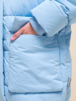 Маркированный товар Зимний пуховик-куртка из мембранной ткани для девочки. Изделие выполнено из материала с peach-эффектом (peach — в переводе с англ. «персик», ткань мягкая, с ворсистой поверхностью). На внешнюю поверхность материала нанесена водоотталкивающая пропитка (DWR), она задерживает грязь и влагу снаружи — ребёнок не промокнет. Также есть дополнительная пропитка на внутренней стороне ткани. Куртка классического прямого силуэта подходит для любого типа фигуры. Капюшон с двумя швами, что обеспечивает анатомически правильную форму и комфортную посадку по голове. Капюшон не отстегивается, предусмотрена регулировка объема эластичными шнурами с пластиковыми стопперами. Манжеты рукавов из эластичной рибаны (ткань в рубчик) — она хорошо тянется и при этом надолго сохраняет отличную форму, в рукава не проникает холод и ветер. Низ изделия и рукавов собраны на комфортную широкую резинку. Центральная застёжка на тракторную молнию с двумя пуллерами — удобно садиться. Тканевый стоппер защищает подбородок от зажима молнией. Фиксирующая строчка предохраняет планку от «заедания» в процессе застёгивания. Куртка тёплая — дополнительно, для защиты от ветра и холода, центральная молния закрыта ветрозащитной планкой на липучках (велкро). По низу объём изделия регулируется эластичным шнуром со стопперами - можно менять силуэт изделия. Куртка стёганая спереди дополнена накладными карманами с клапанами, которые закрываются на магнит — ребёнку просто и быстро открывать и закрывать даже в варежках. Карманы внутри утеплены мягким флисом. В каждой куртке нейм-лейбл! Ребёнок не потеряется и не потеряет куртку! На спинке и в боковых швах расположены светоотражающие элементы — безопасность в тёмное время суток. Изделие неприхотливо в уходе. Пуховик без принта. Куртка выполнена из полиэстера (+мембраны) — она тёплая, не промокает, легко стирается, быстро сохнет, сохраняет отличную форму и цвет надолго. Подкладка из мягкого, тёплого и дышащего флиса (по стану, внутреннему воротнику и в капюшоне). В рукавах подкладка из полиэстера — благодаря этому ребенку легко надевать куртку, руки не путаются в рукавах. Куртка выполнена в голубом цвете. Её просто комбинировать с различными брюками, юбками, колготками. Размерная линейка: 3 (98); 4 (104); 5 (110); 6 (116); 7 (122); 8 (128); 9 (134); 10 (140); 11 (146). Куртка зимняя оверсайз идеальна для маленьких девочек дошкольного и младшего школьного возраста, а также девочек-подростков. Рекомендуемый температурный режим: не ниже минус 30 градусов. Утеплитель: экопух. В рукавах дополнительный слой тонкого синтепона. Модель подходит для носки в детский сад, школу, для прогулок и отдыха. Куртка детская для девочки— стильный и практичный подарок для дочери или внучки на любой праздник. Состав: 100%полиэстер+мембрана, подклад: 100%полиэстер, утеплитель: экопух 100%полиэстер