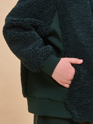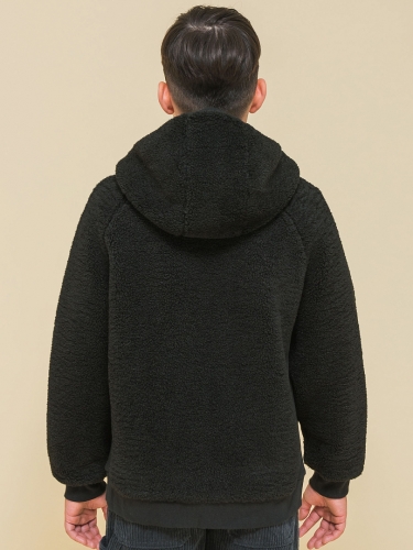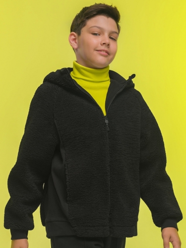 Детская куртка на мальчика выполнена из мягкого бербер-флиса (фактура «барашка»). Куртка актуального оверсайз-силуэта с рукавами кроя реглан подарит ребёнку комфорт и не будет сковывать его движений. По бокам оригинальные вставки из плотной эластичной рибаны. Сочетание материалов с разной фактурой — один из трендов сезона. Капюшон защищает ребёнка от холода и ветра. Оверсайз-куртка удобно застёгивается на молнию по переду, вверху молнии ограничитель для безопаного застёгивания. В швах по переду расположены боковые карманы. Окантовка капюшона, манжеты рукавов и частично манжета по низу изделия выполнены из эластичной рибаны — она на 95% состоит из качественного хлопка. Эластан помогает рибане не растягиваться, сохранять отличную форму долго. Худи однотонное, без принта. Модель неприхотлива в уходе. Одежда из флиса тёплая, лёгкая, мягкая, просто стирается и быстро сохнет, не выгорает и не скатывается, сохраняет прекрасную форму надолго. Толстовка детская выполнена в универсальном чёрном цвете. Она отлично сочетается с различными брюками. Размерная линейка: 1 (86); 2 (92); 3 (98); 4 (104); 5 (110); 6 (116); 7 (122); 8 (128); 9 (134); 10 (140); 11 (146). Мягкая куртка подходит малышам, мальчикам дошкольного и младшего школьного возраста, а также подросткам. Его можно носить в детский сад, школу, на прогулки, оно идеально для активного отдыха и спорта, а также для дома. Подходит для круглогодичной носки: прохладным летом, осенью, зимой, весной и демисезон. Стильный и практичный подарок сыну, брату, внуку или племяннику на Новый год и любой другой праздник. Состав: 100%полиэстер, вставка: 95%хлопок 5%эластан