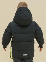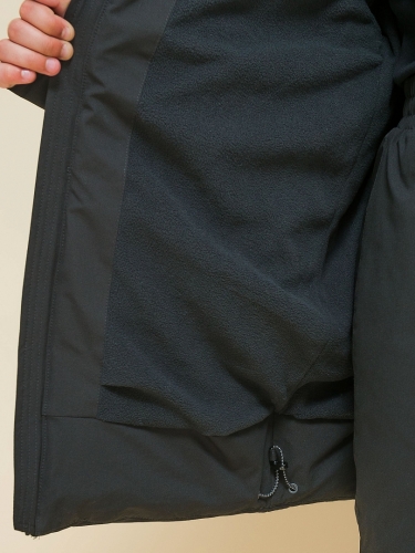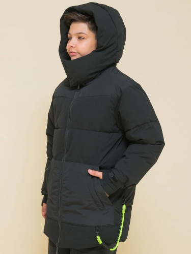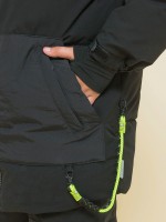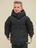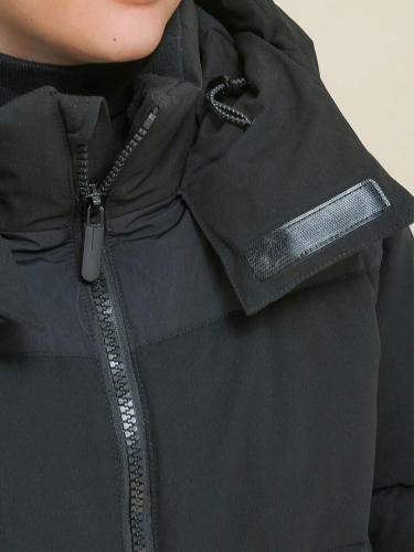 Маркированный товар Пуховик зимний для мальчика из мембранной ткани. Изделие выполнено из материалов двух видов, разных по фактуре. Основная ткань матовая, тактильно приятная. Кокетки переда, спинки и накладные карманы выполнены из гладкой курточной ткани. Сочетание материалов с разной фактурой — один из актуальных трендов. На внешнюю поверхность материала нанесена водоотталкивающая пропитка (DWR), она задерживает грязь и влагу снаружи — ребёнок не промокнет. Также есть дополнительная пропитка на внутренней стороне ткани. Куртка прямого оверсайз-силуэта подходит для любого типа фигуры. Капюшон с двумя швами, что обеспечивает анатомически правильную форму и комфортную посадку по голове. Капюшон не отстегивается, набит утеплителем, предусмотрена регулировка объема эластичными шнурами с пластиковыми стопперами. По низу рукавов манжета, которая дополнительно застёгивается силиконовой патой на липучке (велкро) — удобно регулировать объем. Внутри рукава ветрозащитная манжета из трикотажного полотна с прорезью для большого пальца, которая позволяет придерживать рукав при надевании перчаток. Центральная застёжка на тракторную молнию с двумя пуллерами — удобно садиться. Тканевый стоппер защищает подбородок от зажима молнией. Фиксирующая строчка предохраняет планку от «заедания» в процессе застёгивания. Зимний пуховик тёплый — дополнительно, для защиты от ветра и холода, центральная молния закрыта внутренней ветрозащитной планкой. По низу объём изделия регулируется эластичным шнуром со стопперами. Пуховик на мальчика спереди дополнен карманами-кенгуру с магнитными застёжками — ребёнку просто и быстро открывать и закрывать даже в варежках. Карманы внутри утеплены мягким флисом. Также есть дополнительные карманы на молнии с планкой — удобно пользоваться. Пуховик в модном стиле стритвир - для тех, кто понимает в моде. На левом кармане оригинальный декор — навесной шнур кислотного цвета. Он крепится с помощью двух карабинов за петельки из основной ткани в кармане и боковом шве куртки. В каждой куртке нейм-лейбл! Ребёнок не потеряется и не потеряет куртку! На спинке и в боковых швах расположены светоотражающие элементы — безопасность в тёмное время суток. Изделие неприхотливо в уходе. Пуховик однотонный, без принта. Куртка выполнена из полиэстера (+мембраны), вставки из нейлона — она тёплая, не промокает, легко стирается, быстро сохнет, сохраняет отличную форму и цвет надолго. Подкладка из мягкого, тёплого и дышащего флиса (по стану, внутреннему воротнику и в капюшоне). В рукавах подкладка из полиэстера — благодаря этому ребенку легко надевать куртку, руки не путаются в рукавах. Куртка выполнена в универсальном чёрном цвете. Её просто комбинировать с различными брюками. Куртка зимняя оверсайз идеальна для маленьких мальчиков дошкольного и младшего школьного возраста, а также подростков. Рекомендуемый температурный режим: не ниже минус 30 градусов. Утеплитель: экопух. В рукавах дополнительный слой тонкого синтепона. Модель подходит для носки в детский сад, школу, для прогулок и отдыха. Куртка на мальчика— стильный и практичный подарок для сына или внука на любой праздник. Состав: 100%полиэстер+мембрана, вставка: 100%нейлон, подклад: 100%полиэстер, утеплитель: экопух 100%полиэстер