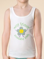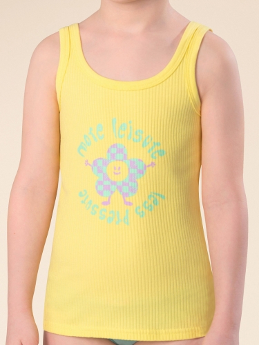 Если вы находитесь в поисках красивого и комфортного белья для своей дочки, обратите внимание на нашу изящную майку из модной ткани в рубчик для девочки. Модель выполнена из кашкорсе с высоким содержанием хлопка — изделие мягкое, воздухопроницаемое, кожа ребёнка дышит. Эластан в составе помогает майке сохранять великолепную форму, даже при частых стирках. Горловина и проймы обработаны эластичным пайпингом в тон — они не растягиваются, остаются в первозданном виде долго. Модель комфортно сидит по фигуре, подходит для носки под блузкой, джемпером, платьем. Изделие представлено в двух цветах. Классический белый вариант универсален, его можно надеть под белую блузку. Интересный бледно-желтый смотрится очень нежно и понравится любой девочке. Майку украшает забавный принт с позитивной надписью. Перевод принта: "Больше досуга, меньше давления". Принт мягкий и стойкий, замечательно переносит стирки. Отличный выбор для повседневной носки, сна, отдыха. Станет замечательным подарком, который способен вызвать искреннюю Состав: 95%хлопок 5%эластан