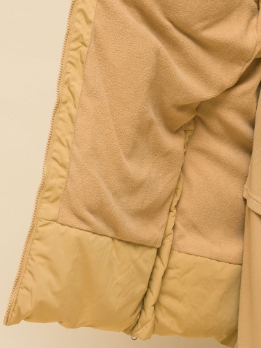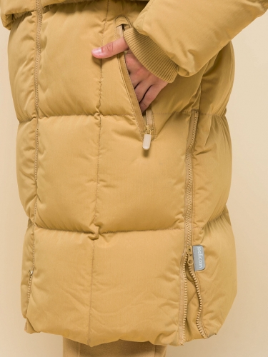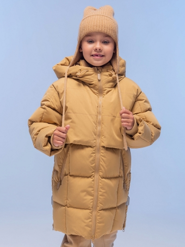 Маркированный товар Пальто зимнее для девочки из мембранной ткани. На внешнюю поверхность материала нанесена водоотталкивающая пропитка (DWR), она задерживает грязь и влагу снаружи — ребёнок не промокнет. Также есть дополнительная пропитка на внутренней стороне ткани. Куртка прямого силуэта оверсайз подходит для любого типа фигуры. Капюшон двухшовный, что обеспечивает анатомически правильную форму и комфортную посадку по голове. Капюшон не отстегивается, предусмотрена регулировка объема эластичными шнурами с пластиковыми стопперами. Внутренние манжеты рукавов из эластичной рибаны (ткань в рубчик) — дополнительная защита от ветра и холода. Ширина горловины позволяет надевать свитер с объемным воротником или объёмный шарф. Верхняя часть переда и спинки имитирует надетый поверх жилет, объём которого регулируется эластиком со стопперами — оригинально и стильно. Центральная застёжка на тракторную молнию с двумя пуллерами — удобно садиться. Тканевый стоппер защищает подбородок от зажима молнией. Фиксирующая строчка предохраняет планку от «заедания» в процессе застёгивания. Куртка-пальто тёплая — дополнительно, для защиты от ветра и холода, центральная молния закрыта ветрозащитной планкой на липучках (велькро). В боковых швах вставлены застёжки-молнии для возможности увеличения ширины по низу изделия. Пальто стёганое дополнено прорезными карманами на молнии — удобно пользоваться. Карманы с боковым входом закрываются на водонепроницаемую молнию со скрытыми звеньями — их содержимое не промокнет. Карманы внутри утеплены мягким флисом. В каждой куртке нейм-лейбл! Ребёнок не потеряется и не потеряет куртку! На спинке и в боковых швах расположены светоотражающие элементы — безопасность в тёмное время суток. Изделие неприхотливо в уходе. Пальто без принта. Куртка выполнена из полиэстера и нейлона (+мембраны) — она тёплая, не промокает, легко стирается, быстро сохнет, сохраняет отличную форму и цвет надолго. Подкладка из мягкого, тёплого и дышащего флиса (по стану, внутреннему воротнику и в капюшоне). В рукавах подкладка из полиэстера — благодаря этому ребенку легко надевать куртку, руки не путаются в рукавах. Пуховик выполнен в бежевом цвете. Его просто комбинировать с различными брюками, юбками, колготками. Размерная линейка: 3 (98); 4 (104); 5 (110); 6 (116); 7 (122); 8 (128); 9 (134); 10 (140); 11 (146). Пальто оверсайз идеально для маленьких девочек дошкольного и младшего школьного возраста, а также девочек-подростков. Рекомендуемый температурный режим: не ниже минус 30 градусов. Утеплитель: экопух. В рукавах дополнительный слой тонкого синтепона. Модель подходит для носки в детский сад, школу, для прогулок и отдыха. Зимнее пальто для девочки — замечательный подарок для дочери или внучки на День рождения или любой другой праздник.