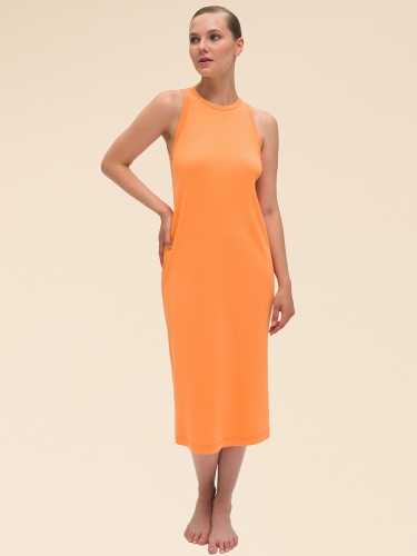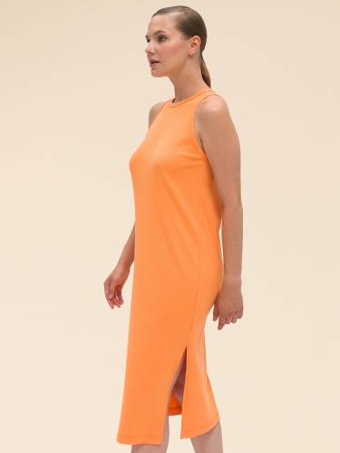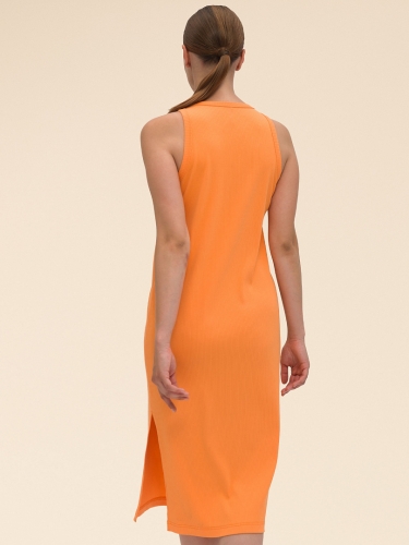 Женское платье-майка длины миди из актуальной ткани в рубчик. Сарафан из кашкорсе мягко облегает, подчёркивая достоинства вашей фигуры и даря комфорт. Горловина и проймы отделаны широким пайпингом — они не теряют форму в течение долгого времени. Проймы смещены к шее — один из модных трендов. Платье без рукавов прилегающего силуэта подчёркивает красоту открытых плеч, рук и спины. Вырез под горло делает дополнительный акцент на плечи и визуально удлиняет шею. Сбоку удобный разрез — ваши движения свободны. Изделие неприхотливо в уходе. Платье однотонное, без принта. В составе ткани высокое содержание качественного хлопка и мягкой вискозы — сарафан комфортный и отлично дышит. Эластан помогает изделию сохранять прекрасную форму даже после многочисленных стирок. Платье миди представлено в двух оттенках: чёрный и оранжевый. Модель идеальна как для женщин, так и для девушек-подростков, высоких и среднего роста. Такой сарафан хорош как длинное домашнее платье или одежда для сна, его можно надеть и на пляж. Для круглогодичного применения: летом, осенью, зимой, весной и демисезон. Размерная линейка: XS (42); S (44); M (46); L (48); XL (50). Трикотажное платье-майка — модный и недорогой подарок маме сестре или подруге на 8 марта и любой другой праздник.