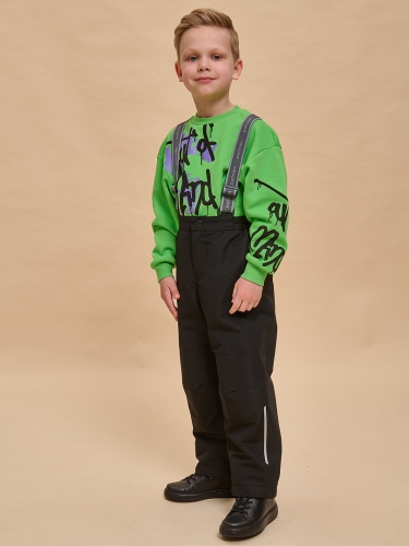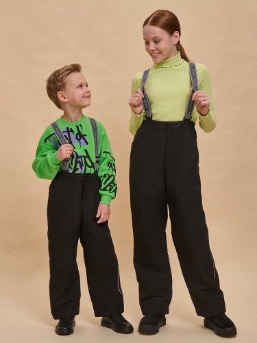Маркированный товар Брюки детские демисезонные из курточной ткани с влагоотталкивающей пропиткой. Идеальная модель на сырую и грязную погоду. Подходит как мальчикам, так и девочкам. Благодаря продуманному крою хорошо садятся на детей с любой фигурой. Штаны застёгиваются на молнию и кнопку. Отстёгивающиеся эластичные лямки регулируются по длине — дети дошкольного и младшего школьного возраста могут носить брюки с ними, дети постарше могут их отстегнуть. Лямки украшает лого бренда. По низу внутренняя утяжка на эластичный шнур со стопперами — можно менять силуэт брюк: прямые или затянутые. По бокам наклонные карманы — удобно пользоваться. В боковых швах светоотражающие элементы — безопасность в тёмное время суток. На коленях усилители с вытачками для удобства. За штанами легко ухаживать — согласно рекомендациям, указанным на вшивных ярлыках. Модель выполнена из полиэстера — брюки тёплые, лёгкие, просто стираются, быстро сохнут, сохраняют отличную форму и цвет надолго. Внутри штанов гладкая подкладка для удобства надевания. Брюки детские выполнены в универсальном цвете. Их легко сочетать с различными куртками и пальто. Осенние прямые брюки подходят для девочек и мальчиков дошкольного, младшего школьного возраста, а также подростков. Рекомендуемый температурный режим: не ниже минус 5 градусов. Утеплитель: синтепон 60 г/м2. Брюки детские чёрные идеальны для носки в школу, для прогулок и активного отдыха, спорта. Помните о правильном уходе за изделием: рекомендуется стирать при температуре не выше 30 °C, без предварительного замачивания, с изнанки. Это поможет сохранить качество и цвет куртки на длительное время. Не забывайте о выборе правильного размера. Используйте таблицу размеров на фотографии, чтобы выбрать подходящий вариант для вашего ребёнка. Обратите внимание, что цвет товара на экране вашего устройства может отличаться от реального.