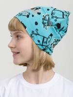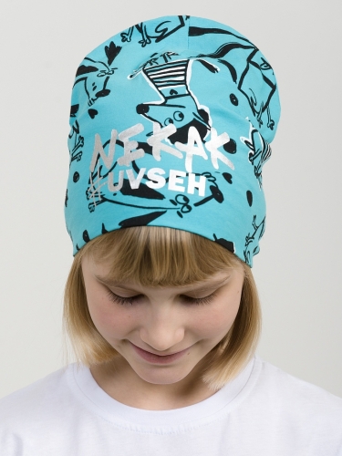 Шапка бини аккуратного объема в all over принт с текстовым принтом из серебристого металлика. Перевод Не как все.