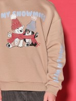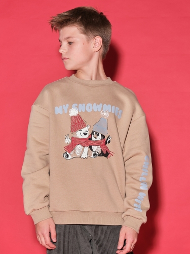Маркированный товар Свитшот детский с начесом. Свободная толстовка со спущенным плечом и углубленной проймой подарит ребёнку комфорт и стнет стильным дополнением гардероба. Свитшот для подростков девочек средней длины — актуальный модный тренд. Манжеты, отделка горловины и низа изделия выполнены из эластичной рибаны (ткани в рубчик). Она не растягивается, отлично сохраняет форму, при этом ребёнку удобно надевать и снимать свитшот. Модель неприхотлива в уходе. Свитшот с рисунком по переду и рукаву выполнен из футера с начёсом. Принты мягкие и стойкие, без проблем переносят частые стирки. В составе ткани преобладает высококачественый хлопок — толстовка приятна на ощупь и прекрасно пропускает воздух. Полиэстер помогает сохранить цвет и первозданный внешний вид надолго. Свитшот для мальчика выполнен в в универсальных цветах, которые легко сочетать с любыми брюками, джинсами. Оверсайз-свитшот подходит как для маленьких детей, так и для подростков. Джемпер идеален для детского сада, прогулок, активного отдыха, дома. Свитшот с принтом можно носить круглый год. Помните о правильном уходе за изделием: рекомендуется стирать при температуре не выше 30 °C, без предварительного замачивания, с изнанки. Это поможет сохранить качество и цвет куртки на длительное время. Перевод принта: "чилим с моими снежинками". Не забывайте о выборе правильного размера. Используйте таблицу размеров на фотографии, чтобы выбрать подходящий вариант для вашего мальчика. Обратите внимание, что цвет товара на экране вашего устройства может отличаться от реального.