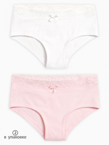 Трусики-шортики для девочек. Комплект из 2-х трусиков. По талии декорированы кружевным эластиком и атласным бантиком.