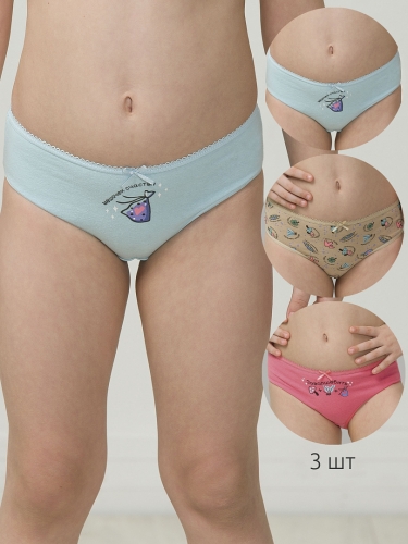 Детские трусы слипы для девочки, набор 3 штуки. Составляя детский гардероб, очень важно подобрать комфортные и удобные трусы для детей и подростков для повседневной носки на каждый день и сна. Трикотажные детские трусики слипы с эластичной резинкой по талии надежно держатся на теле ребенка, не скручиваются, не закатываются и не сползают, а дышащая ткань позволяет избежать натирания нежной кожи. Добавление эластана делает трикотажные трусы эластичными и более удобными при надевании. Плотная, но свободная модель и средняя посадка не сковывают движения девочки, что важно маленьким детям. Милое и практичное детское нижнее белье порадует родителей долговечностью – хлопковые повседневные трусы не боятся многочисленных стирок, не растянутся и не полиняют. Детская одежда для девочек должна отвечать моде, комплект представляет только молодежные цвета, которые порадуют и поднимут настроение современной модницы. низ: 93%хлопок 7%эластан, низ2: 93%хлопок 7%эластан, низ:3 93%хлопок 7%эластан