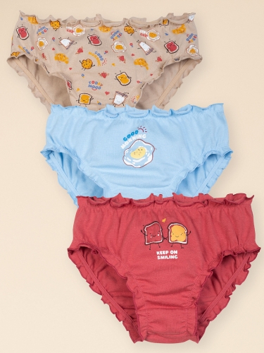 Каждая мама заботится о комфорте своего ребёнка и хочет выбрать для него только действительно качественное бельё. Наш комплект (3 шт.) красивых слипов средней посадки для девочки — ваш идеальный выбор. В составе ткани высокое содержание хлопка — трусы мягкие, дышащие и комфортные для кожи ребёнка. Эластан помогает изделию сохранять прекрасную форму даже после многократных стирок. Благодаря высококачественному материалу и аккуратному пошиву наше белье идеально садится на фигуру — ребёнку удобно на протяжении всего дня. Мягкая резинка исключает раздражение и трение. В комплект входят трусы трёх актуальных оттенков: карминный розовый, васильковый и "овсяное молоко". Бежевый, голубой и терракотовый - нежные и естественные цвета, прекрасно подходят маленьким модницам. Бельё декорировано уютными и "вкусными" принтами в стиле "хюгге" — они поднимут настроение даже в самый пасмурный день. Перевод: "Доброе утро. Продолжай улыбаться". Принты эластичные и прочные, не боятся частых стирок. Изюминка модели — обработка "са