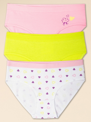 При выборе белья для своего ребёнка каждая мама хочет быть уверена в его качестве и в том, что ребёнку будет комфортно. Комплект трусов для девочки (3 шт.) полностью соответствует этим требованиям. Слипы средней посадки выполнены из ткани с высоким содержанием хлопка — модель мягкая, прекрасно пропускает воздух, давая коже ребёнка дышать. Благодаря эластану в составе изделие надолго сохраняет отличную форму, даже после многочисленных стирок. Качественная ткань и анатомически правильный крой обеспечивают идеальную посадку на теле — ребёнку комфортно на протяжении всего дня. Мягкая резинка исключает раздражение и трение. Трусы детские для девочки представлены в трёх актуальных вариантах расцветки: зелёный (трендовый оттенок лайма), белый в мелкие разноцветные сердечки и розовый с небольшим принтом в виде забавной ромашки с ножками и сердечек. Принт эластичный и стойкий, отлично переносит частые стирки. В линейке представлены хлопковые трусы следующих размеров: 1 (86); 2 (92); 3 (98); 4 (104); 5 (110); 6 (116); 7 (122); 8 (128); 9 (134); 10 (140); 11 (146). Модель подходит девочкам дошкольного возраста, девочкам младшего школьного возраста и девочкам-подросткам. Трусы слипы для девочки — идеальный выбор детского белья для повседневной носки. Модные трусы станут хорошим подарком дочери или внучке на любой праздник. Выбирайте нужный размер по таблице размеров на фото. Цвет товара на экране вашего устройства может отличаться от цвета изделия вживую. Товар возврату и обмену не подлежит.