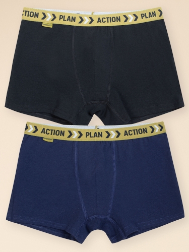 При выборе белья для своего ребёнка каждая мама хочет быть уверена в его качестве и в том, что ребёнку будет комфортно. Комплект (2 шт.) трусов для мальчика полностью соответствует этим требованиям. Классические боксеры выполнены из ткани с высоким содержанием хлопка — модель приятна на ощупь, отлично пропускает воздух, кожа ребёнка дышит. Эластан помогает изделию надолго сохранить превосходную форму, даже при частых стирках. Качественная ткань и правильный крой обеспечивают идеальную посадку на теле — ребёнок чувствует себя комфортно на протяжении всего дня. Шорты дополнены широкой тканой резинкой на поясе. Она декорирована вытканным жизнеутверждающим текстом, который отлично переносит стирки. Боксеры представлены в двух универсальных цветах: классическом чёрном и трендовом нэви. Оба цвета прекрасно сочетаются с любой одеждой. Трусы отлично подходят для повседневной носки, спортивных тренировок, отдыха. Станет замечательным подарком, который способен вызвать искреннюю радость у каждого ребёнка, оставив незабываемые воспоминания о любом празднике и принося массу удовольствия каждый день.