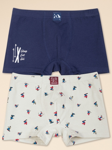 Трусы боксеры для мальчика из мягкого хлопка в наборе из 2 штук представлены в практичном синем и сером цвете. Белье выполнено из мягкого материала с небольшим содержанием эластана. Благодаря такому составу трусы шорты отличаются высокой износоустойчивостью, хорошо переносят многочисленные стирки, не скатываются и долго сохраняют цвет. Высокий комфорт в трусах боксерах обеспечивается за счет анатомического кроя ластовицы и аккуратно обработанных швов. Бережно спрятанная под мягкую хлопковую ткань резинка не сдавливает нежную кожу ребенка. Семейные трусы шорты универсальны - подходят мальчикам и подросткам. Такое детское нижнее бельё удобно носить как дома, так и в школу, садик, спортивные секции, где необходимо находиться в общей раздевалке. Приятные, сдержанные цвета трусов боксеров, синий и светло-серый, обязательно понравятся мальчикам. Детские семейные трусы боксеры станут полезным подарком в период новогодних и рождественских праздников. Детское нижнее белье высокого качества прослужит долго и будет радовать ребенка и родителей. Подарите сыну, внуку, племяннику набор трусов боксеров для мальчика! Настоящая забота о самых любимых. Состав: низ: 93%хлопок 7%эластан, низ: 2 93%хлопок 7%эластан