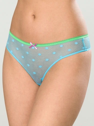 Прозрачные женские трусики-стринги с низкой посадкой. Эластик с сердечками по линии талии, мягкая сетка в горошек, яркие цвета – идеально для лета. Легко и комфортно. Трусы едва заметны и ощутимы под одеждой. Легко комплектовать с топом Pelican.