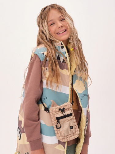 Маркированный товар Утепленная двусторонняя жилетка для девочки: комфорт и стиль в каждом движении! Порадуйте свою маленькую модницу стильным и практичным утепленным жилетом! Двусторонний жилет для девочки обеспечит уют и комфорт в любое время года. Уникальный двусторонний дизайн: с одной стороны оригинальная стежка с цветочным узором, а с другой — гладкая принтованная ткань. Ваша дочка сможет легко менять свой образ в зависимости от настроения! Универсальная жилетка детская для девочки избавит от необходимости иметь несколько вещей – он заменяет сразу два стильных элемента! Высокий воротник-стойка обеспечит дополнительный комфорт, защищая шею от холода. Ваша дочка будет чувствовать себя уютно даже в прохладные дни, а мама может не волноваться за здоровье ребенка. Жилет для девочки детский имеет прочную тракторную молнию с двусторонним пуллером, что делает процесс застегивания максимально удобным для ребёнка. По пройме и верху воротника расположен внутренний эластик, который обеспечивает надежную посадку. Это значит, что жилет не будет сковывать движения вашей девочки, даже во время активных игр на улице, и мама всегда будет уверена, что одежда подстраивается под ребенка, не вызывая дискомфорт. Утяжка по низу жилета с эластичным шнуром и стопперами позволяет легко регулировать его объем, обеспечивая защиту от ветра и холода. Это особенно удобно для мам, которые заботятся о том, чтобы их дочке было тепло и комфортно, независимо от погодных условий. Глубокие накладные карманы согреют руки и сохранят важные мелочи! Жилетка для девочки утепленная синтепоном жилет станет идеальным решением для прогулок! Удобство, стиль и отличное качество — всё это Вы найдете в одном изделии. Рекомендуемый температурный режим не ниже +5°C. Не забывайте о выборе правильного размера. Используйте таблицу размеров на фотографии, чтобы выбрать подходящий размер. Обратите внимание, что цвет товара на экране вашего устройства может отличаться от реального.