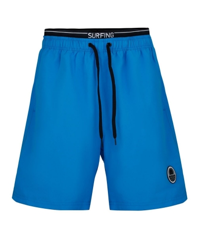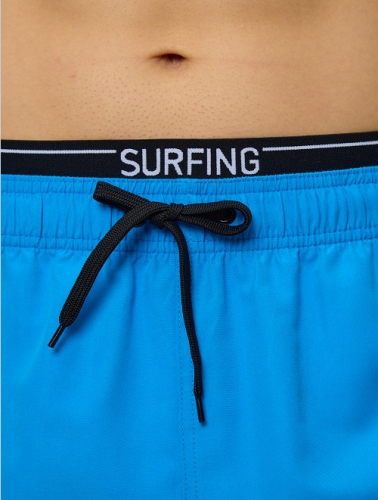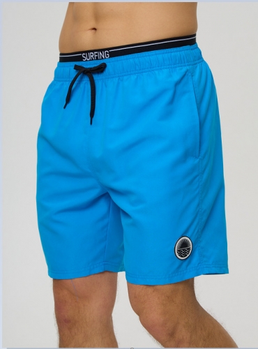 Мужские шорты с боковыми карманами из мягкого полотна без эластана. Внутренние плавки из мягкой сетки. По линии талии широкая принтованная резинка и шнурок для оптимальной посадки. Декоративный резиновый элемент на левой части шорт. Подгиб по нижнему краю шорт.
