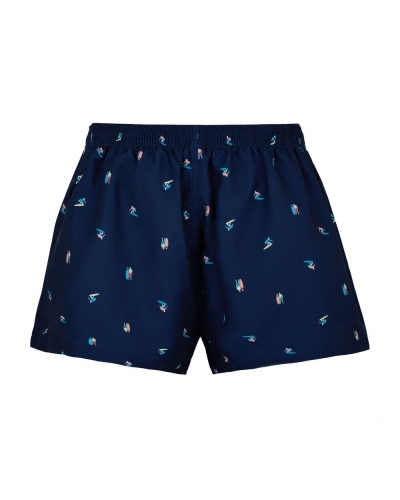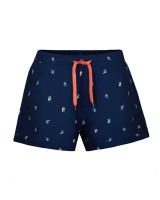 Мужские укороченные плавки из мягкого полотна без эластана, с принтом - серфер. Боковые карманы с двух сторон. Внутренние плавки из мягкой эластичной сетки. Сзади, по линии талии широкая резинка, спереди - регулируемый шнурок. Подгиб по нижнему краю шорт.