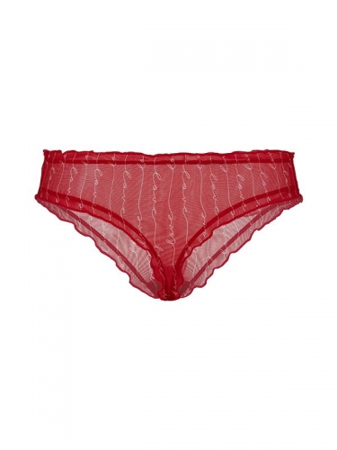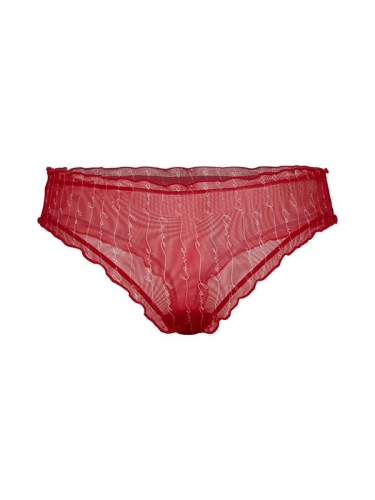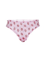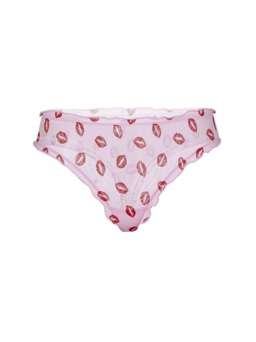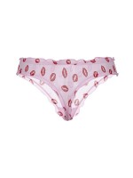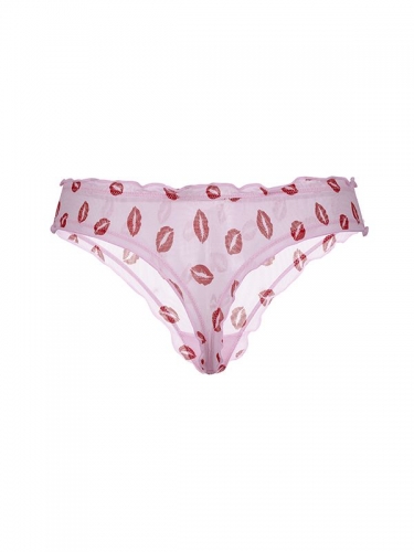 Трусики brazilian со средней посадкой выполнены из мягкой принтованой сетки. Нежная резинка по талии и краю ножек с рюшами. Набор в подарочной коробочке с сердечком состоит из двух трусиков в разных цветах : нежно-розового с принтом "поцелуй" и красного с надписью "love". Ластовица из хлопка.