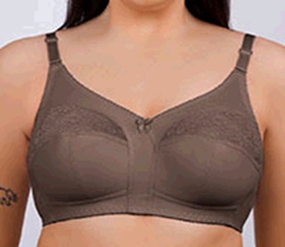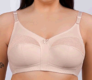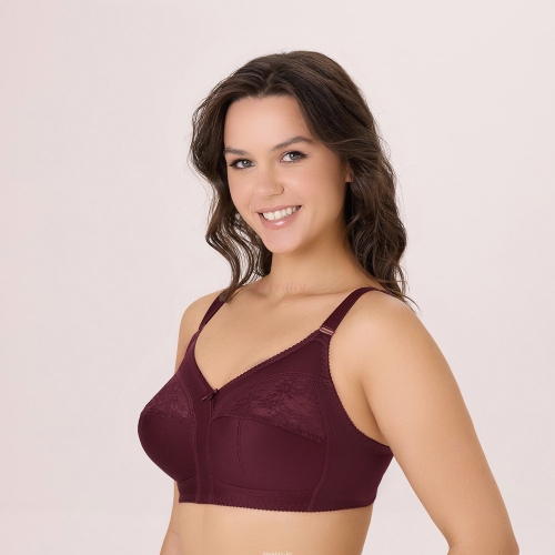 2113. Бюстгальтер бескаркасный из эластичного полотна в сочетании с неэластичным кружевным полотном для большой размерной группы. Нижняя деталь чашки ламинирована хлопком. Состав: 25% Х/Б 71% ПА 4% ЭЛАСТАН