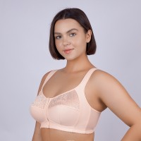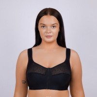 2128. Бюстгальтер без каркасов из эластичного трикотажного полотна, неэластичного трикотажного полотна, дублированного хлопком, и эластичного кружевного полотна. Бретель дублирована подкладкой. Застежка располагается спереди. Состав: 38% Х/Б 57% ПА 5%