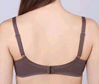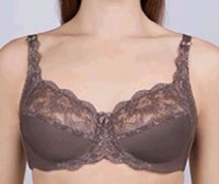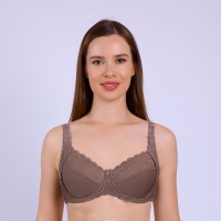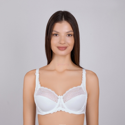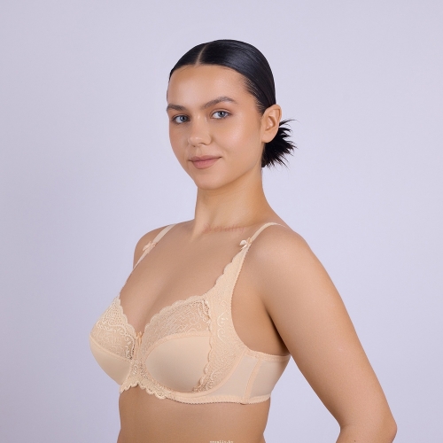299. Бюстгальтер из эластичного полотна, из трикотажного полотна и эластичного кружева. Чашка мягкая на каркасах. Нижняя деталь из неэластичного трикотажа, верхняя деталь из эластичного кружева. Боковая деталь чашки переходящая в бретель из объёмного дубл