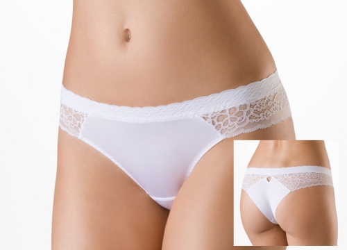 Танга с заниженной линией талии. Полотно "clin-cut" позволяет не обрабатывать края спинки. На спинке вырез в виде капельки.